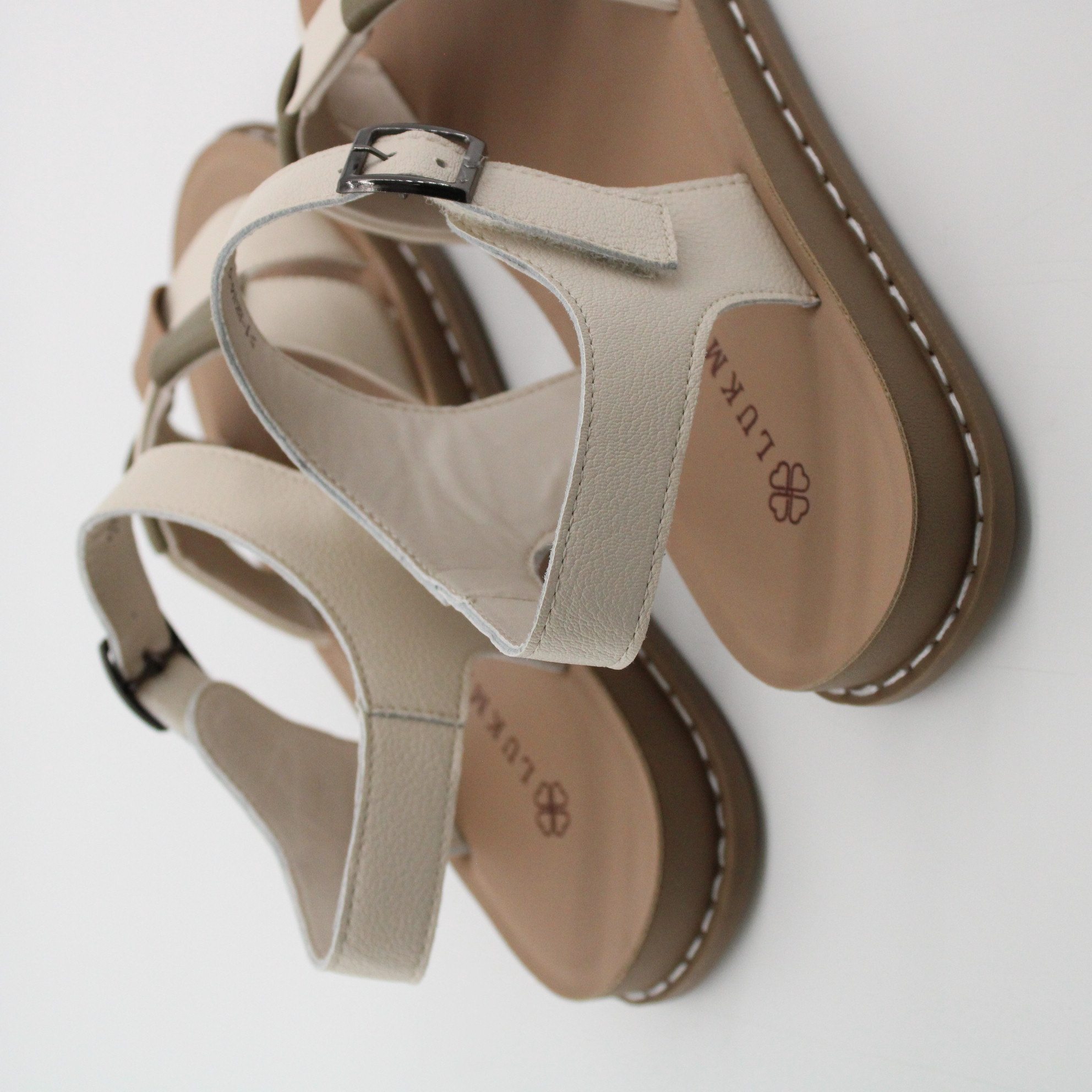 Сандалии молочного цвета.