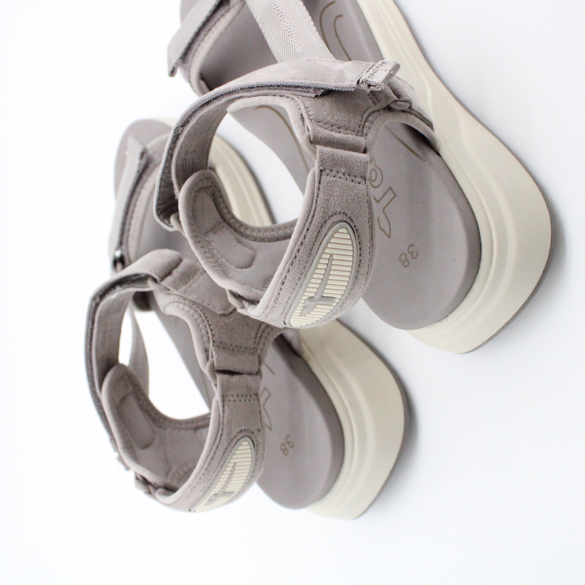 Стильные женские бежевые босоножки безупречны в своей простоте. Лишив модель броского декора акцент переместили на комфорт. Идеальную посадку обеспечивает регулируемая застежкой велькро союзка и ремешок через щиколотку, а за стиль отвечают тонкие ремешки. Мягкая стелька с технологией Touch-IT приспосабливается к индивидуальной форме стопы, обеспечивая постоянный комфорт и дарит легкость и свободу движения. Двухкомпонентная гибкая подошва с небольшим протектором отвечает идеальное сцепление с поверхностью.