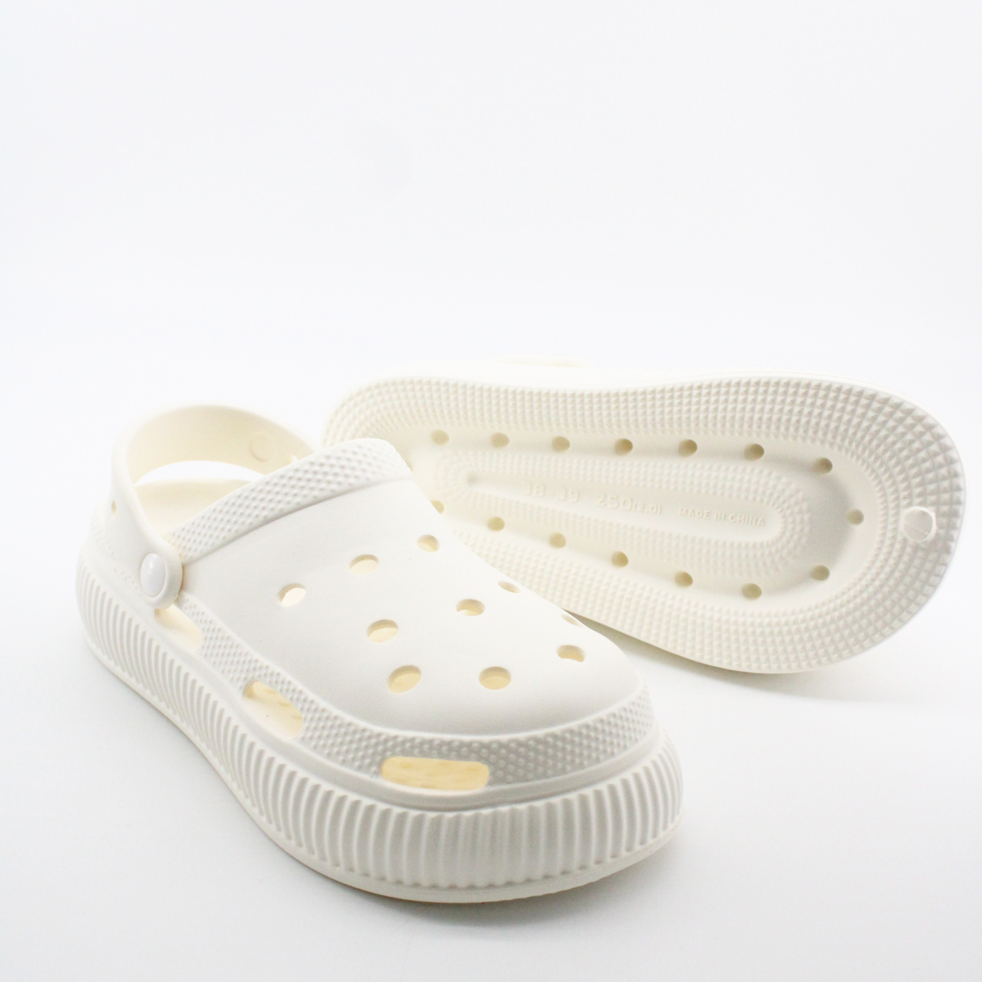 Женские сабо с закрытым мысом и сквозной перфорацией выполнены из ультралегкого эва материала для комфорта в каждом шаге. А специальная подошва помимо сниженного веса имеет улучшенные амортизирующие свойств